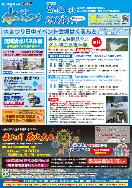 最上川発祥の地である長井市で行われる「水」をテーマにした真夏のお祭り「ながい水まつり」。