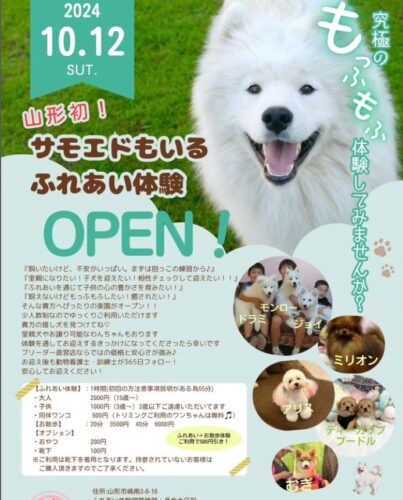 【新店】10/12 サモエドカフェ・ふれあい体験ブース(山形市)