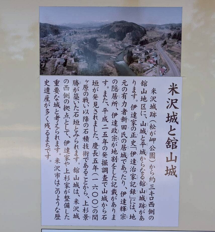 舘山城跡は上杉神社から車で7分程の所にあります。