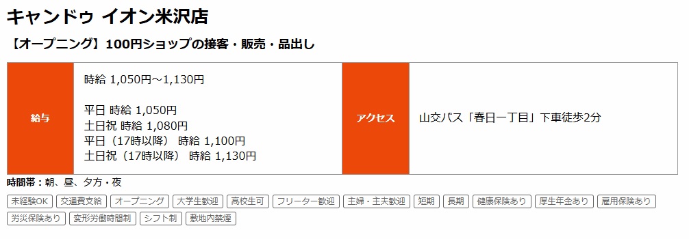 ちなみに「キャンドゥアルバイト求人情報公式サイト」にも、イオン米沢店の求人が出ていました。