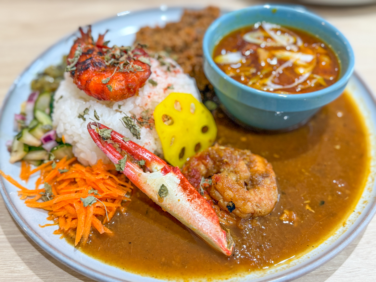 友人は「渡り蟹とガサ海老出汁のスープカレー」を追加した3種がけを注文。