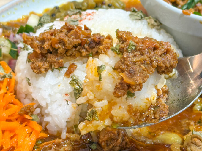 対するキーマは、八丁味噌のコクと根菜で丸い味わい。