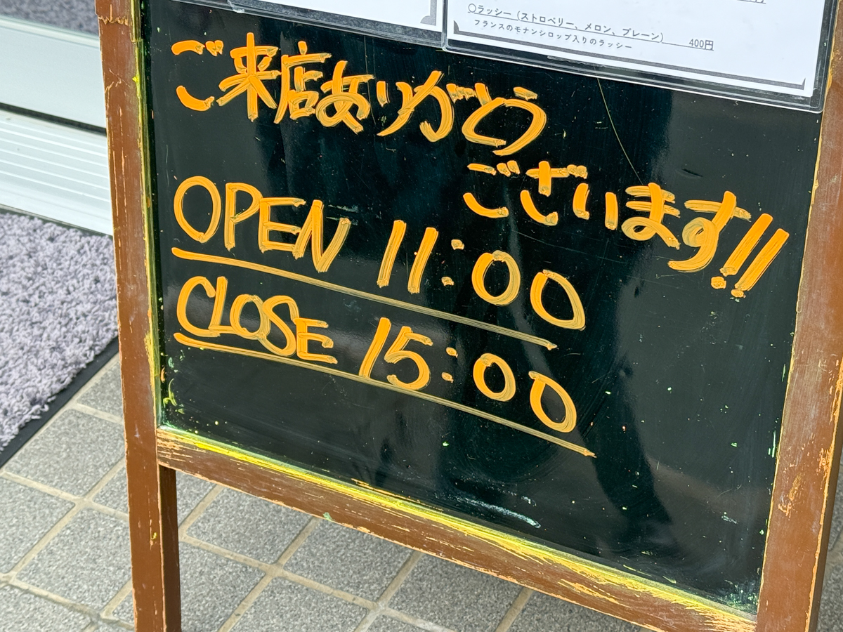 営業時間 | 11:00〜15:00(10月いっぱいは昼営業) |