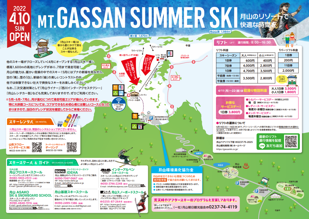 | 電話番号 | 023-775-2025 月山ペアリフト 023-774-2218 問い合わせ 月山観光開発(株) |