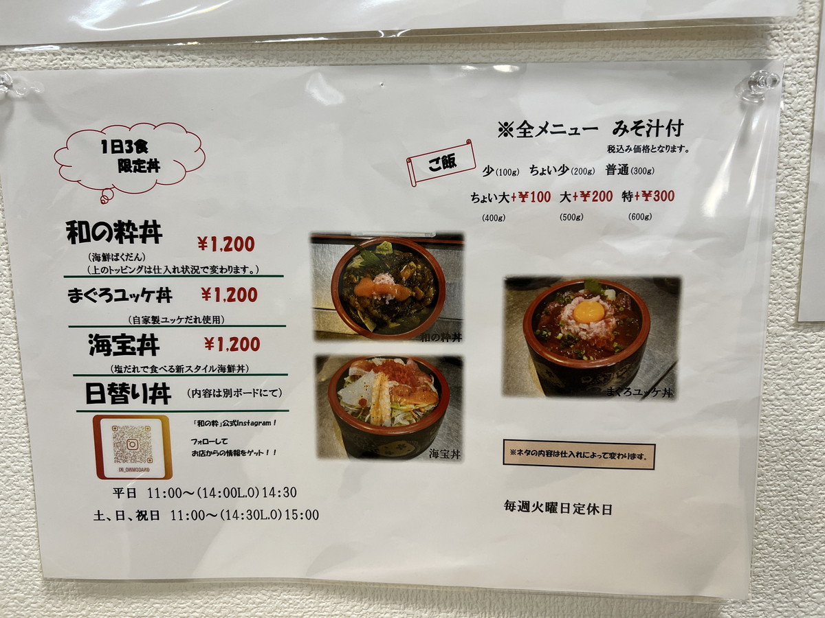 今は西田店のスタッフさんが慣れるまで海鮮丼系のメニューになっていますが、これから徐々に生のお刺身が苦手な方にも楽しんでいただけるような「定食メニュー」もスタート予定だとか!