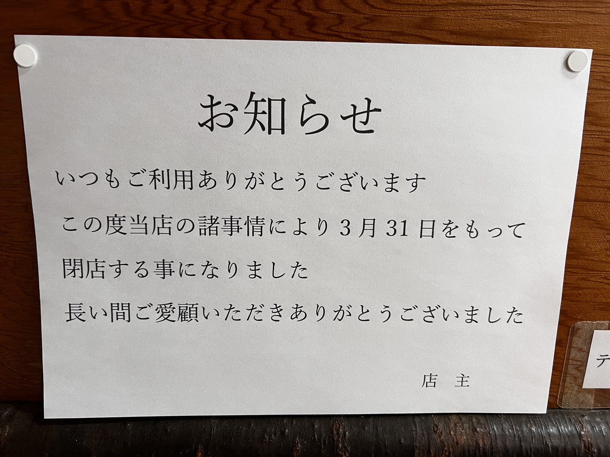 店内には閉店をお知らせする貼り紙がありました。