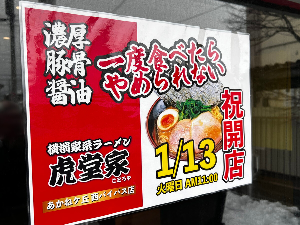横浜家系ラーメン 虎堂家 あかねヶ丘西バイパス店(山形市あかねヶ丘)がオープン!