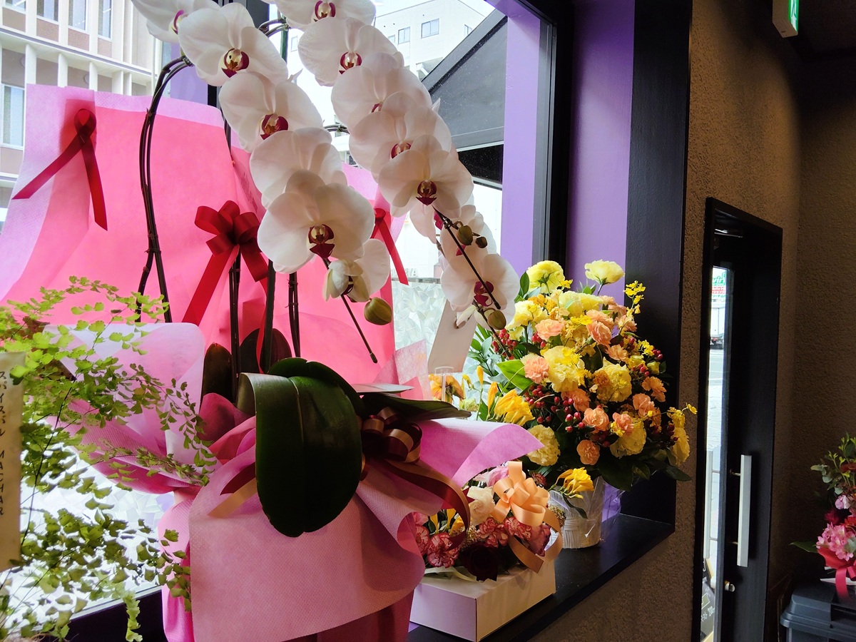 店内にはオープンをお祝いするお花がいっぱい!