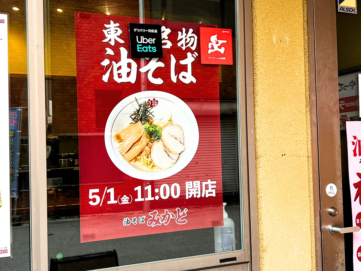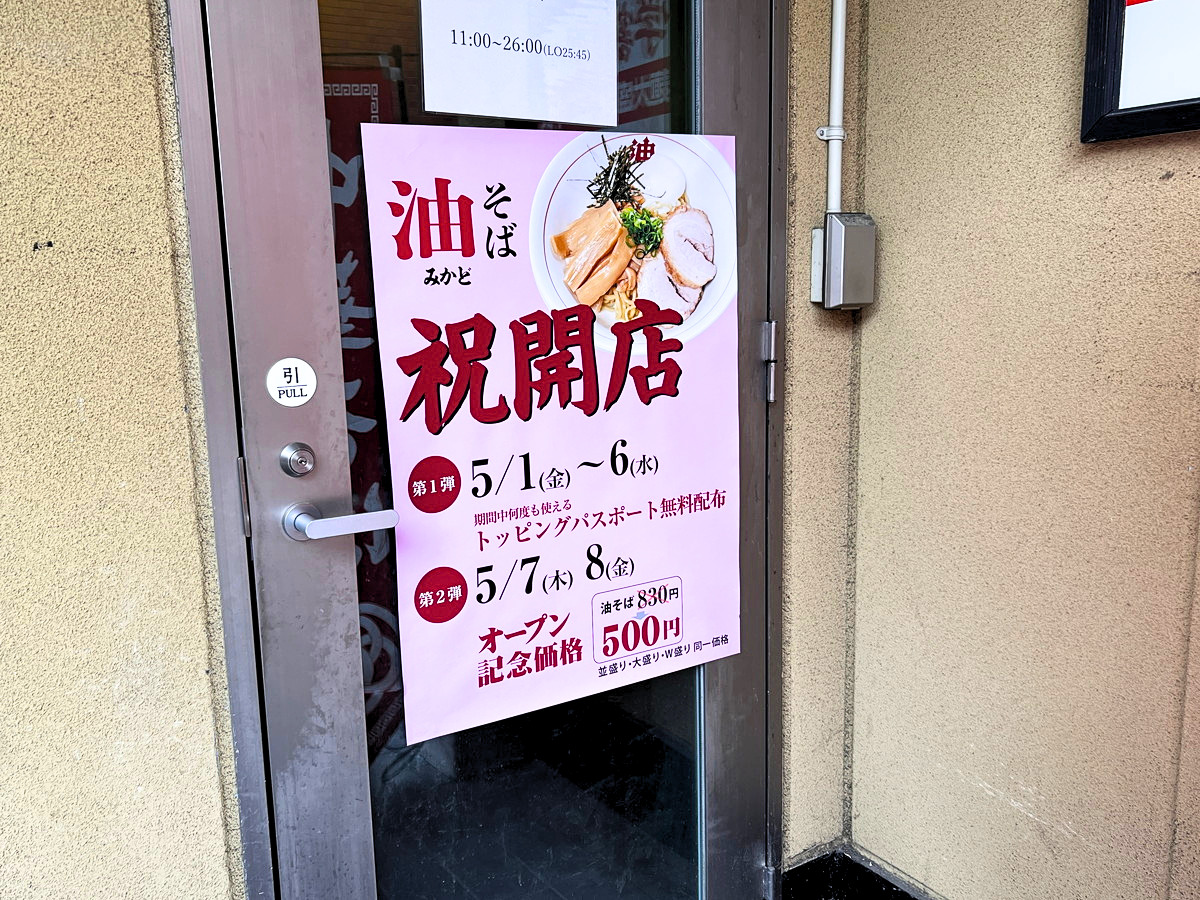 5月1日(金)11:00に「油そば みかど」さんがオープンします!!