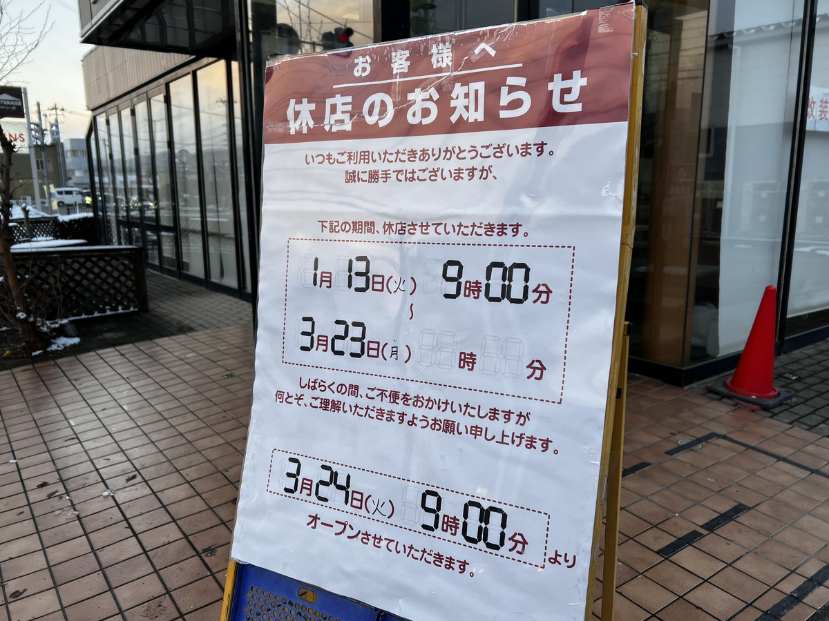 改装休店期間は1月13日(火)~3月23日(月)までです。