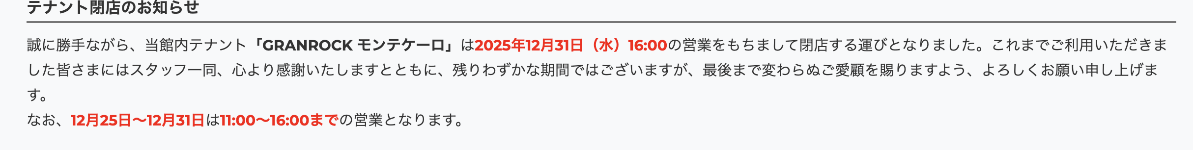 山形市の観光拠点「ぐっと山形(山形県観光物産会館)」内で親しまれてきたジェラート専門店『GRANROCK モンテケーロ』さんが、2025年12月31日に閉店することがわかりました。