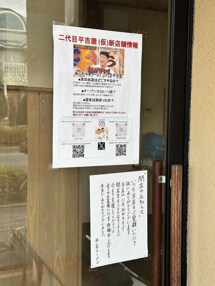 — やまがた牛骨ラーメン 二代目平吉屋【2026年4月1日開店予定】 (@heikichiya2026) February 15, 2026