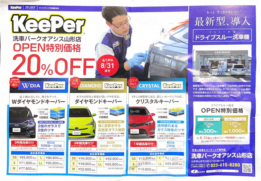 【新店情報8/6】洗車パークオアシス山形店(山形市北町)がオープン!