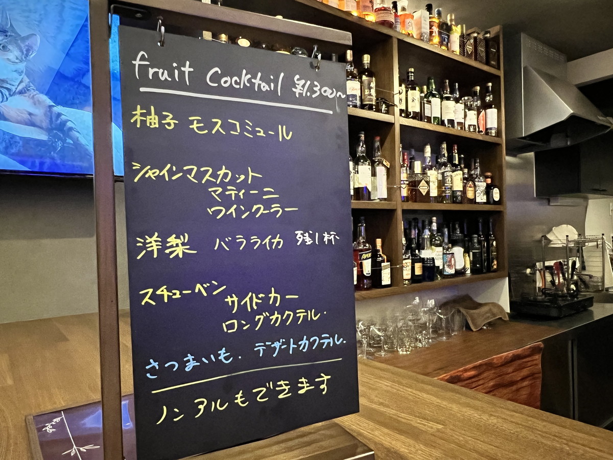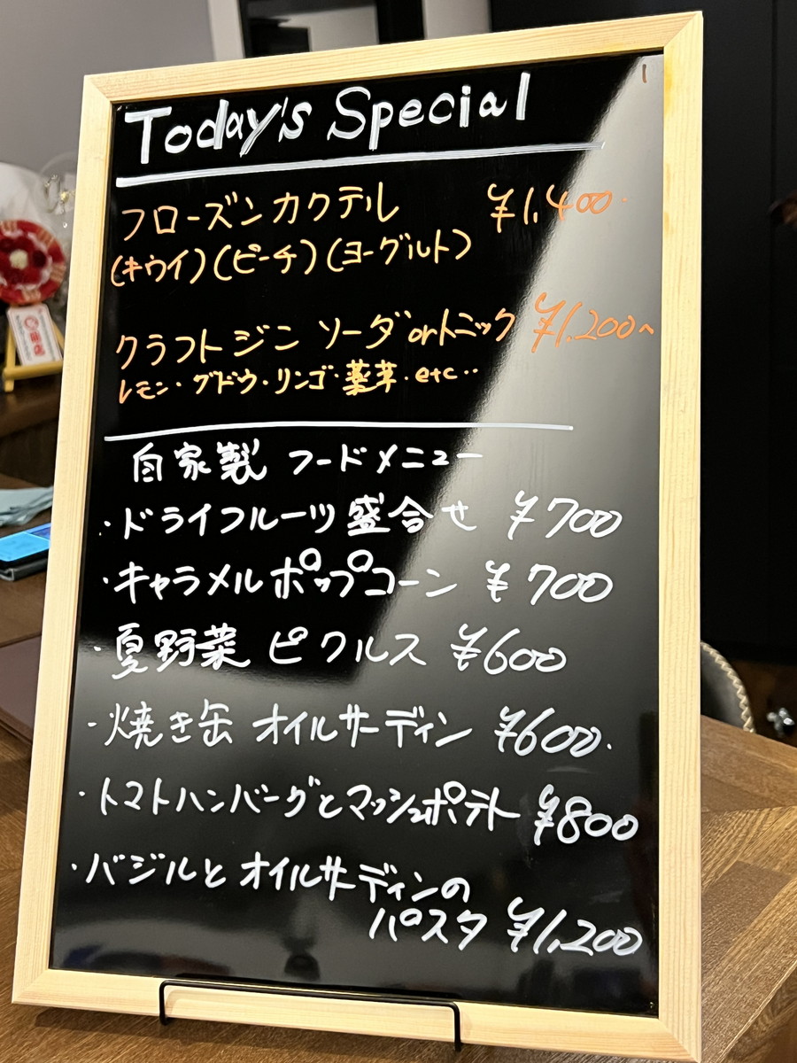 カウンターにはその日おすすめの飲み物や食べ物が書かれています。