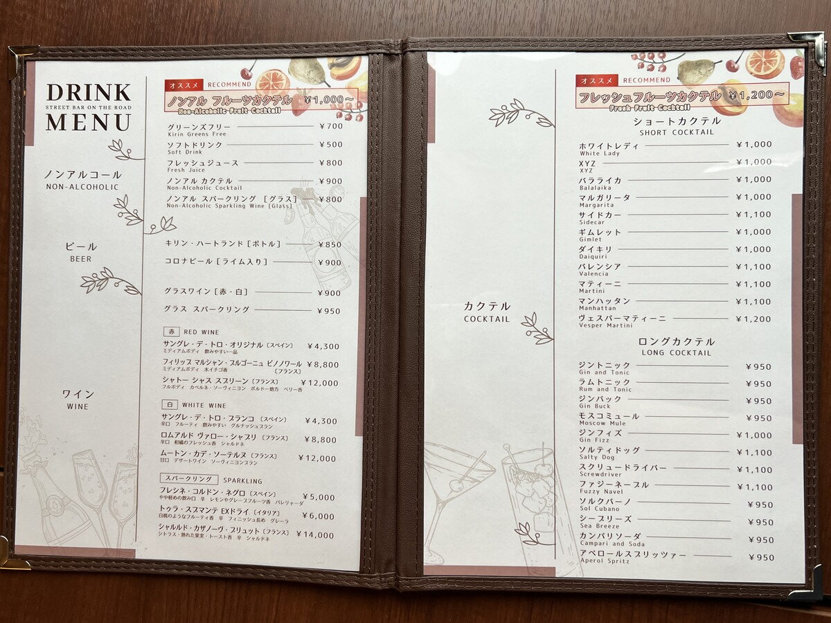 2.STREET BAR ON THE ROADのメニュー