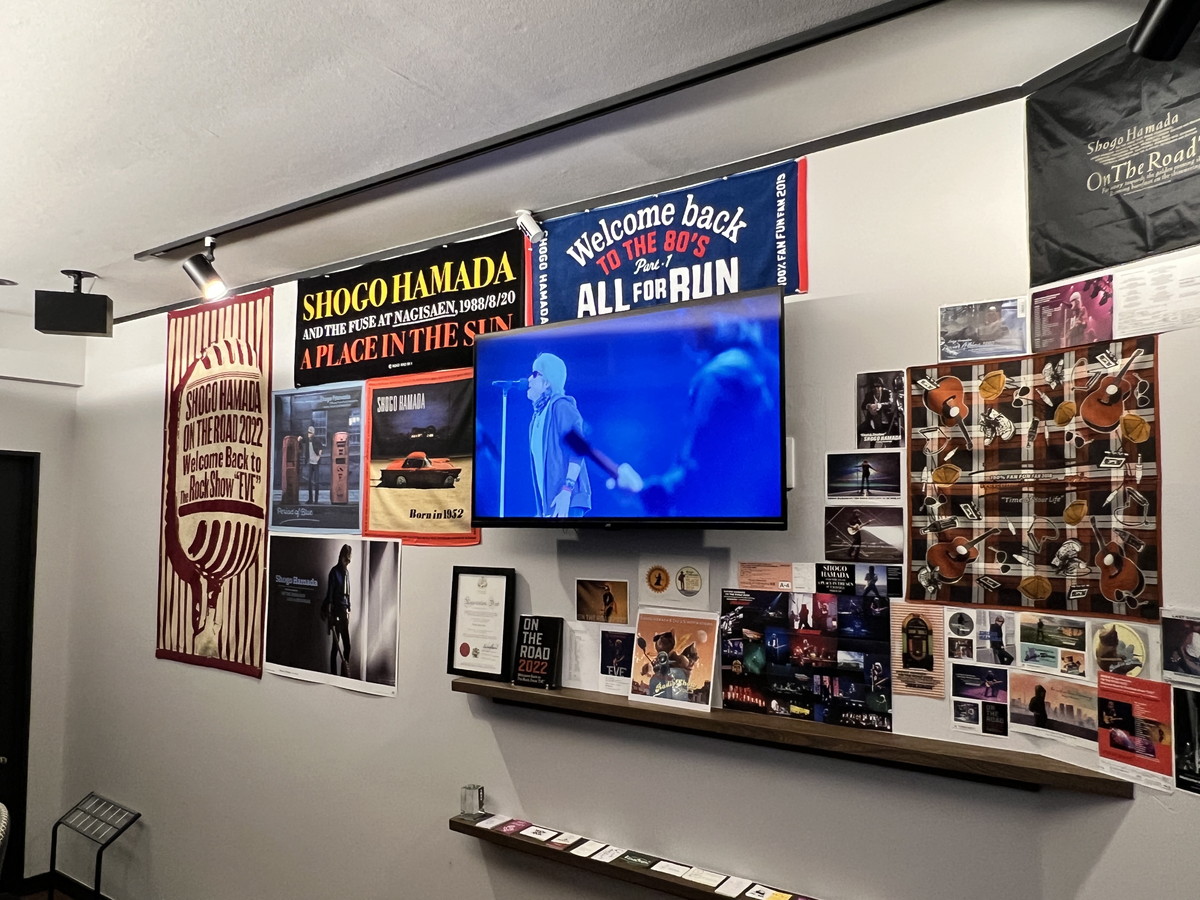 こちらのマスターの戸津さん、「浜田省吾」さんの大ファンということで、店内には浜田省吾さんのグッズが飾られているのはもちろん、営業中はライブ映像が流れています!