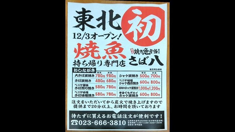 続いて12月3日同敷地内に焼き魚弁当店「さば八」をオープンです。