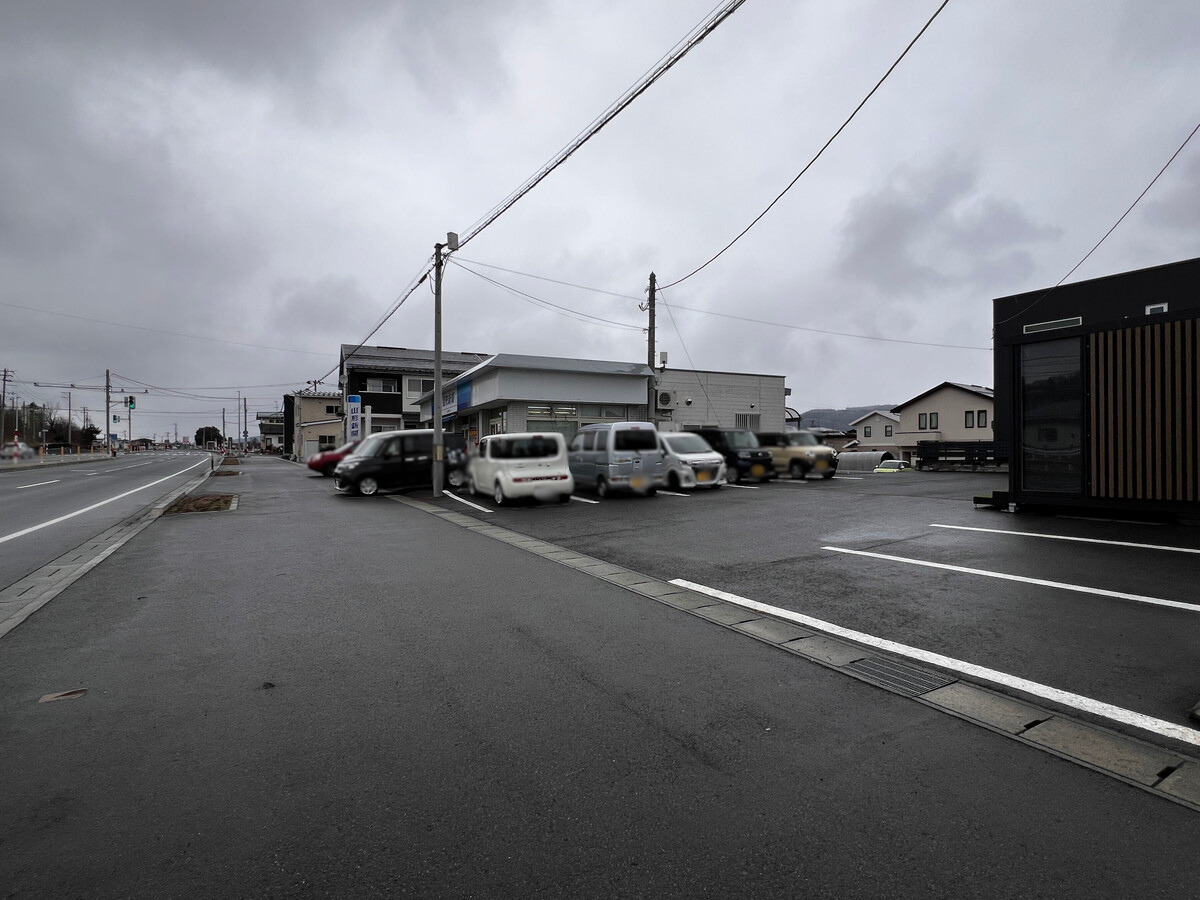 看板の×印(山新販売(株)上山営業所さん側)は駐車できませんのでご注意ください。