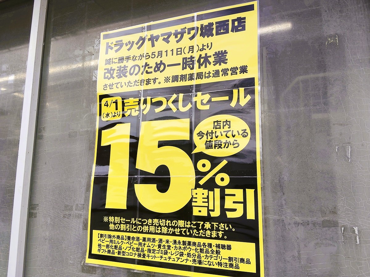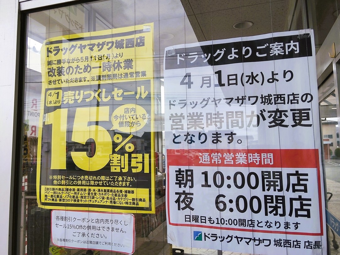 【山形休業情報】ドラッグヤマザワ城西店が改装のため一時休業に