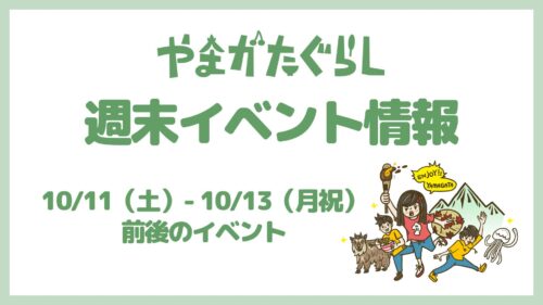 イベント【山形週末イベント情報】10/11(土)〜10/13(月祝)前後のマルシェやイベント週末のイベント情報をお届けです!!! イベント情報は「やまぐらパートナーからのお知らせ」の後にご紹介です。 延期や中止の場