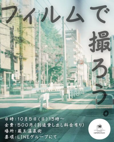 イベント【山形イベント情報10/5】蔵王温泉フィルムカメラフォトウォーク(山形市)2025年10月5日(日)に、蔵王温泉街を散策しながらフィルムカメラでポートレートや風景を撮影するイベントが開催されます。 蔵王温