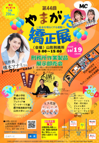 やまぐらパートナー【山形おすすめイベント情報10/19】豪華ゲストも!第44回 山形矯正展が開催「第44回 山形矯正展」が、10月19日(日)に山形刑務所で開催されます。 先着200名には来場記念のプレゼント! 豪華ゲストも参加する