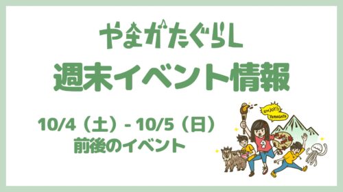 イベント【山形週末イベント情報】10/4(土)〜10/5(日)前後のマルシェやイベント週末のイベント情報をお届けです!!! イベント情報は「やまぐらパートナーからのお知らせ」の後にご紹介です。 延期や中止の場