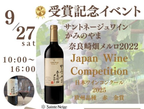 イベント【山形イベント情報9/27】サントネージュワインイベント(上山市)2025年9月27日(土)に、上山市で「山形ワインカーヴ★サントネージュワインイベント★」が開催されます。 山形ワインカーヴ★サン