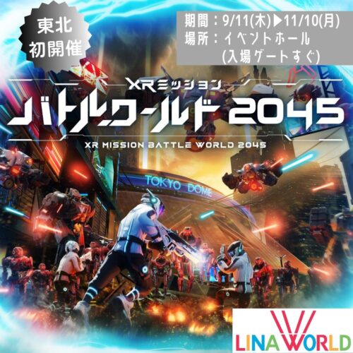 イベント【山形イベント情報9/11-11/10】東北初開催!!XRバトルアトラクション「バトルワールド2045」東京ドームシティで大人気を博した最新XR技術のアトラクション「バトルワールド2045」が、ついに東北初上陸 未来都市を舞台にした