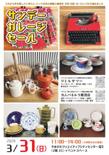 イベント【山形イベント情報3/31】サンデーガレージセールが開催されます 2024年3月31日、山形市本町のやまがたクリエイティブシティセンター Q1にて「サンデーガレージセール」が開催されます。 サン