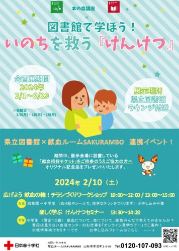イベント【山形イベント情報〜2/29】図書館で学ぼう!いのちを救う「けんけつ」が開催中! イベント掲載フォームよりご応募いただきました! ありがとうございます! 2024年2月29日まで山形市の山形県立図書館にて『図書