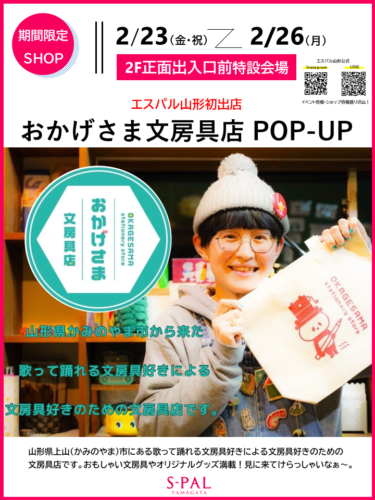 イベント【期間限定ショップ 2/23〜2/26】全国で話題の山形のあのお店がエスパルに!!! どーも、山形のプチ情報担当ヤマガタロウです! 今山形で最も勢いのあるお店の1つ「おかげさま文房具店」がエスパル山形に期間