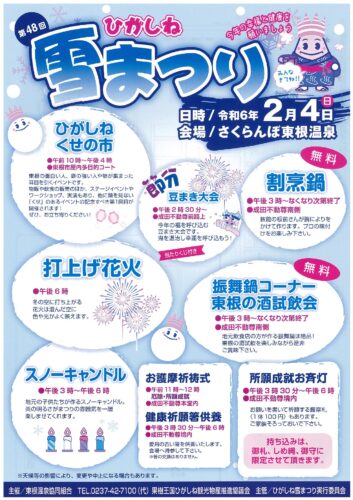 イベント【山形イベント情報2/4】第48回ひがしね雪まつりが開催されます! 2024年2月4日、東根市のさくらんぼ東根温泉にて「第48回ひがしね雪まつり」が開催されます。 第48回ひがしね雪まつり タイ