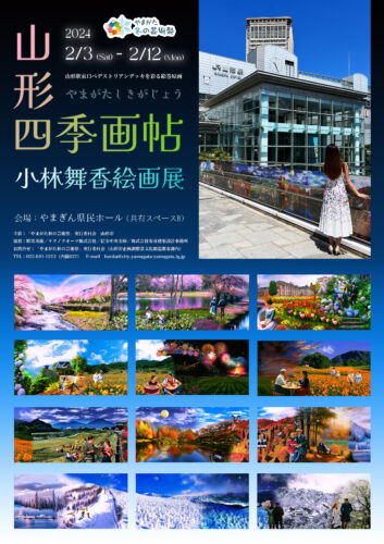 イベント【山形イベント情報2/3〜2/12】山形四季画帖 - 小林舞香絵画展 -<やまがた冬の芸術祭> イベント掲載フォームより投稿いただきました! ありがとうございます。 2024年2月3日〜2月12日まで、山形市双葉町のやまぎん