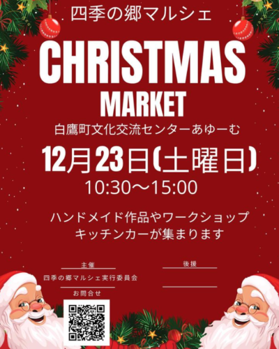 イベント【山形イベント情報 12/23】四季の郷マルシェ CHRISTMAS MARKET(白鷹町文化交流センターあゆーむ) どーも、山形のプチ情報担当ヤマガタロウです! 12/23(土)、白鷹町の「文化交流センターあゆーむ」にて「四季の郷マルシェ」が開