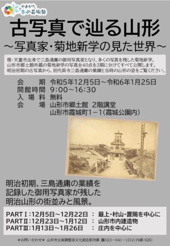 イベント【山形イベント情報〜1/25】「やまがた冬の芸術祭」古写真で辿る山形~写真家・菊地新学の見た世界~ イベント掲載フォームよりご応募いただきました。 ありがとうございます! 2024年1月25日まで山形市にある山形市郷土館(旧済生