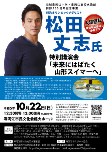 イベント【山形イベント情報10/22】事前申し込み必要!メダリスト松田丈志氏特別講演会開催 2022年10月22日、寒河江市でメダリスト松田丈志氏の講演会が開催されます。 メダリスト松田丈志氏特別講演会開催 【オリンピ