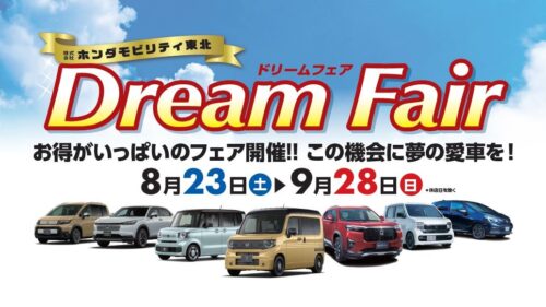 やまぐらパートナー【山形注目イベント】Honda Dream Fair 開催!この夏は夢の一台に出会うチャンス東北最大規模を誇るHondaディーラー「ホンダモビリティ東北」が、 超大型フェア「Dream Fair(ドリームフェア)」を開催中! 開催期間は