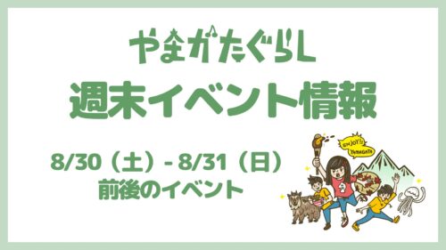 イベント【山形週末イベント情報】8/30(土)〜8/31(日)前後のマルシェやイベント週末のイベント情報をお届けです!!! イベント情報は「やまぐらパートナーからのお知らせ」の後にご紹介です。 延期や中止の場