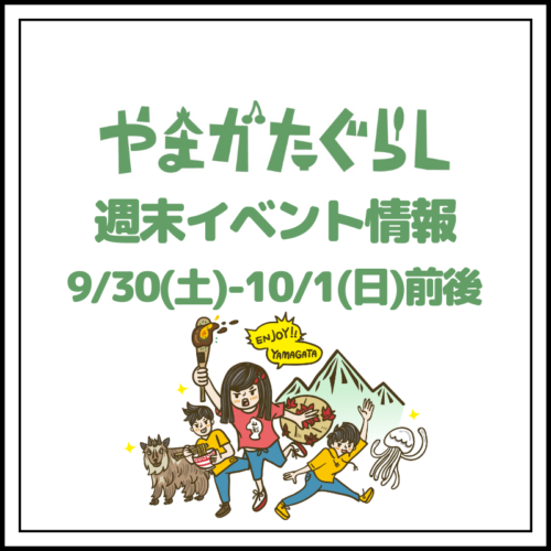 イベント【山形週末イベント情報】9/30(土)〜10/1(日)前後のマルシェやイベント 週末のイベント情報をお届けです!!! コロナ感染症の状況によっては延期や中止の場合もあるので、事前に公式サイトやSNSをチ