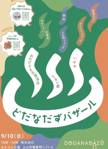 イベント【山形イベント情報9/10】どだなだずバザールが開催されます!(上山市) 2023年9月10日、上山市鶴脛町のおかぶん広場でどだなだずバザールが開催されます。 どだなだずバザールが開催 場所はおかげざ