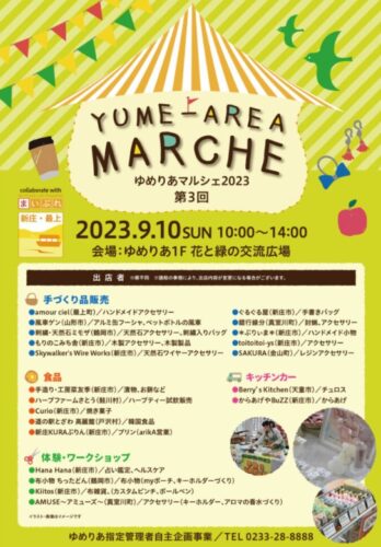 イベント【山形イベント情報9/10】第3回 ゆめりあマルシェ2023が開催されます!(新庄市) 2023年9月10日にゆめりあ施設内で「第3回 ゆめりあマルシェ2023」が開催されます! ゆめりあマルシェとは? 新庄駅直結の複合文化