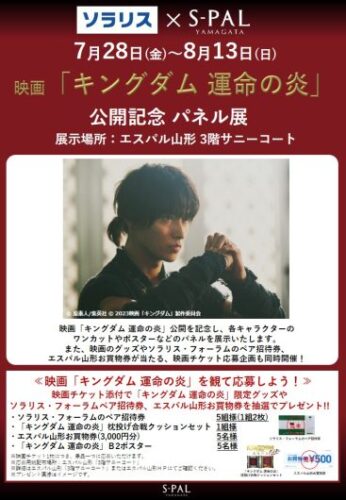 イベント【イベント情報 7/28 〜 8/13】映画「キングダム 運命の炎」公開記念パネル展 どーも、山形のプチ情報担当ヤマガタロウです! あの人気作品映画の公開記念パネルが開催されています!!! 映画「キング
