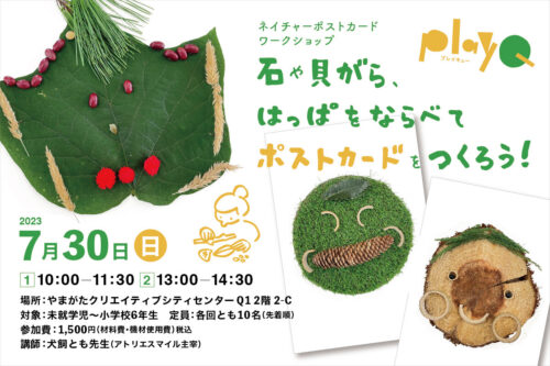 イベント【山形イベント情報7/30】ネイチャーポストカードワークショップが開催されます(山形市本町) 2023年(令和5年)7月30日、やまがたクリエイティブシティーセンターQ1(キューイチ)で、 「ネイチャーポストカード ワークショップ」