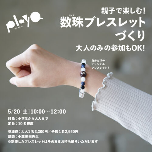 イベント【山形イベント情報5/20】「親子で楽しむ!数珠ブレスレットづくり」 2023年5月20日、山形市にあるやまがたクリエイティブシティセンターQ1にて「親子で楽しむ!数珠ブレスレットづくり」が開催! 山