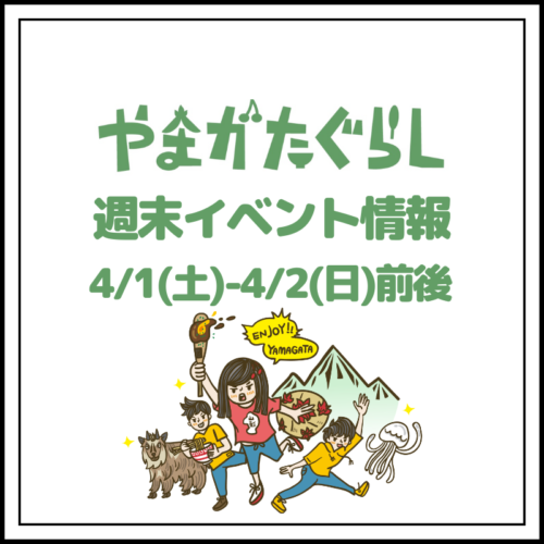 イベント【山形週末イベント情報】4/1(土)〜4/2(日)前後のマルシェやイベント 週末のイベント情報をお届けです!!! コロナ感染症の状況によっては延期や中止の場合もあるので、事前に公式サイトやSNSをチ