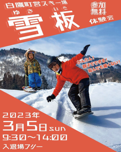 イベント【山形イベント情報3/5】白鷹町営スキー場で「雪板」無料体験会が開催されるようです 2023年3月5日、白鷹町営スキー場で「雪板」無料体験会が開催されるようです。 「雪板」無料体験会の内容 この投稿をInstagramで見