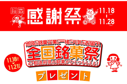 山形の話題【山形の話題】ユニクロ各店舗で感謝祭!店舗毎に全国の銘菓を先着配布するようです! どーも、山形大好きヤマガタロウです! ユニクロで感謝祭が始まったようです! ユニクロ感謝祭 公式HPで紹介されています!