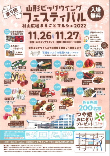 イベント【山形イベント情報11/26・27】「山形ビッグウイングフェスティバル」開催(山形市) 11/26(土)・27(日)、山形市にて「第9回 山形ビッグウイングフェスティバル」が開催されます。 山形ビッグウイング公式サイトより引