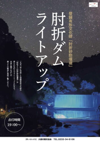 山形の話題【山形イベント情報6月〜】夜の肘折を楽しむイベントが開催されているようです! 2022年6月〜10月まで夜の肘折を楽しむイベントが開催されているようです! 1952年に完成した登録有形文化財の「肘折ダム(肘折砂防
